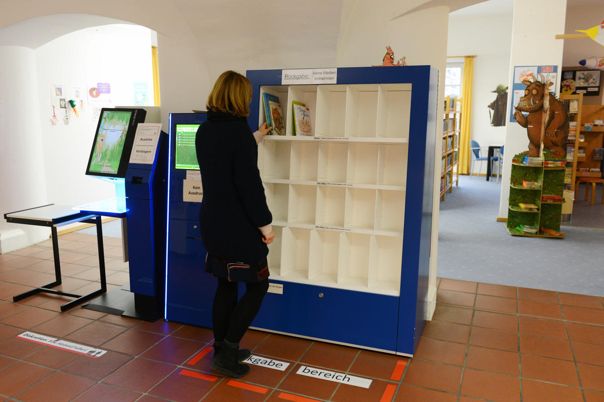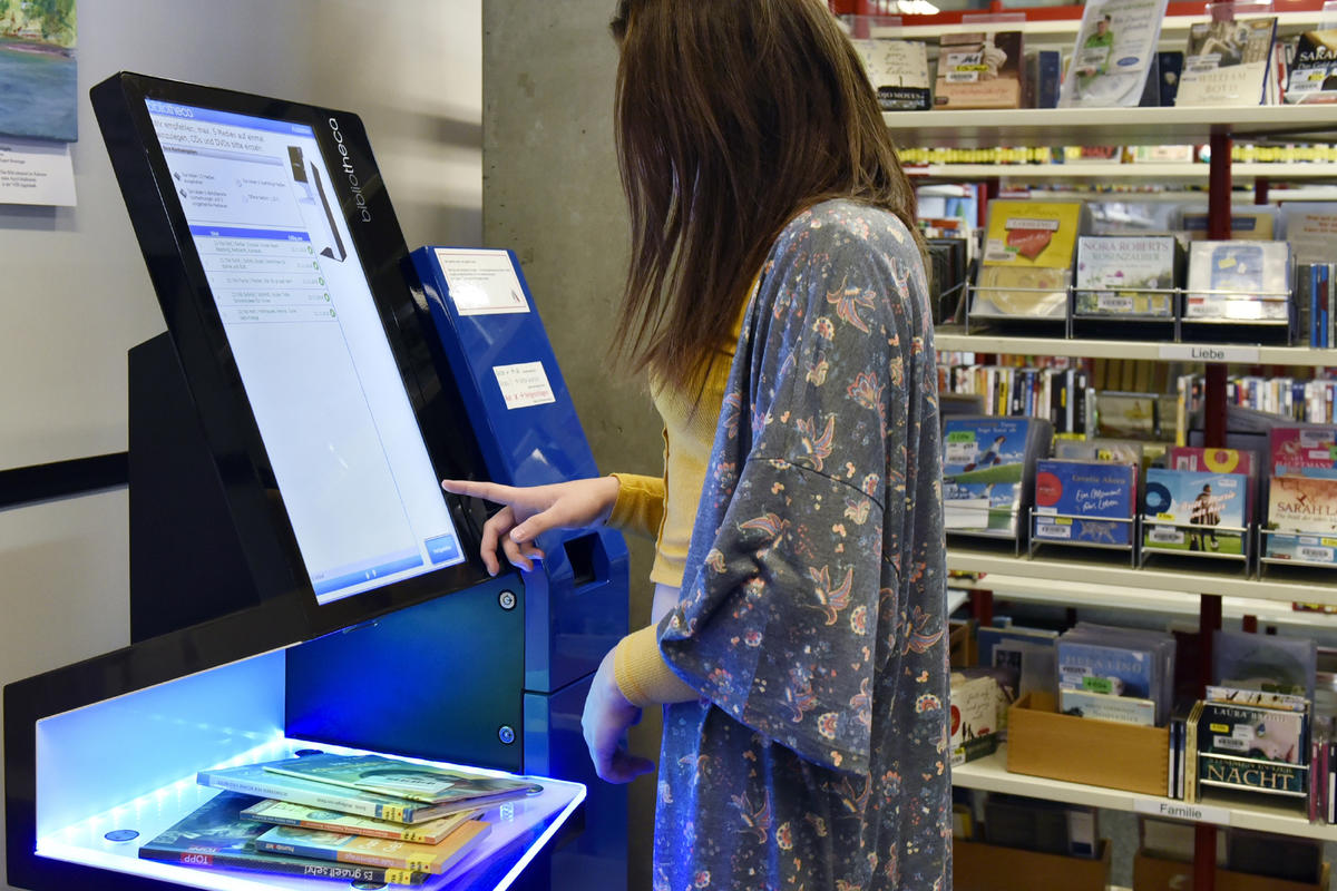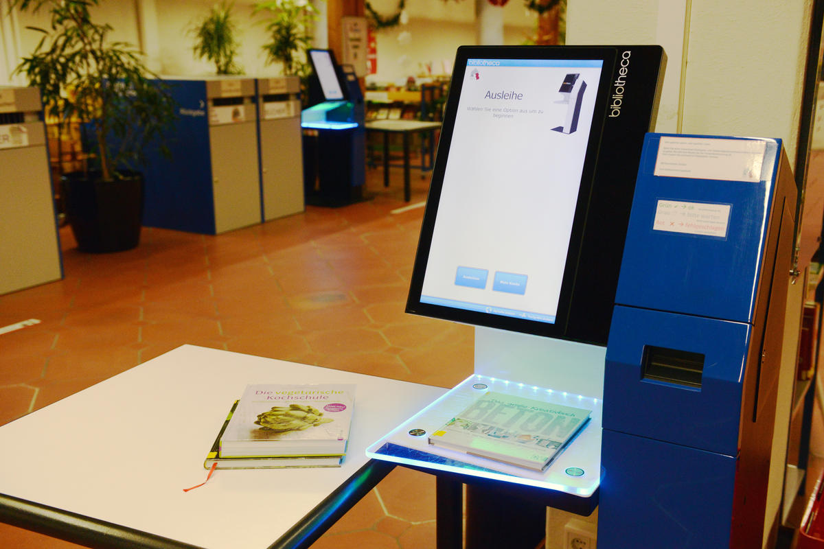 Sie können in der Stadtteilbücherei Ihre Medien an Automaten selbst ausleihen und zurückgeben.