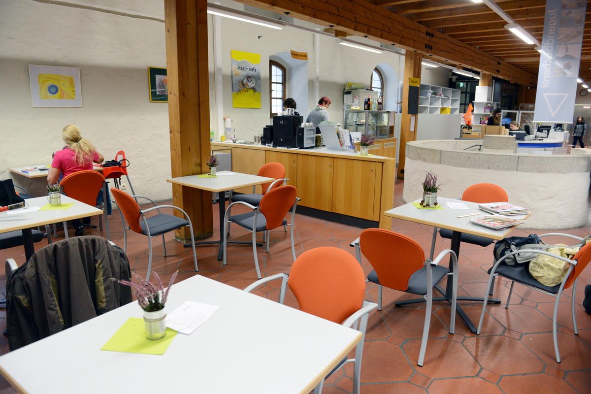 - das Insel-Café, wo Sie Speisen und Getränke zu günstigen Preisen bestellen können,