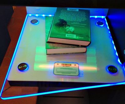 Legen Sie nun die Medien, die Sie ausleihen möchten, auf die Platte des Geräts. Wir empfehlen, maximal 5 Medien auf einmal einzulegen, CDs und DVDs bitte einzeln.