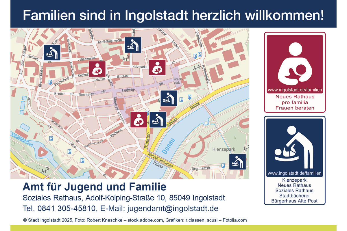 Das Amt für Jugend und Familie ist Anlauf- und Informationsstelle für Ingolstädter Familien zu allen Fragen rund ums Thema Familie. Sie können sich auch an die Familienstützpunkte wenden.