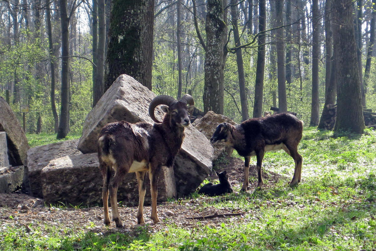 Als Mufflon (Ovis orientalis orientalis-Gruppe) werden mehrere Unterarten des Wildschafs zusammengefasst. Ursprünglich lebten Europäische Mufflons in offenen Gebirgslandschaften auf steinigen, trockenen Böden. In Mitteleuropa eingebürgert, leben sie in Laub- und Mischwaldgebieten sowohl im Flachland als auch in den Mittelgebirgen, wobei trockene und steinige Böden bevorzugt werden. Die Widder haben schneckenförmig eingedrehte Hörner bis zu 80 cm Länge.