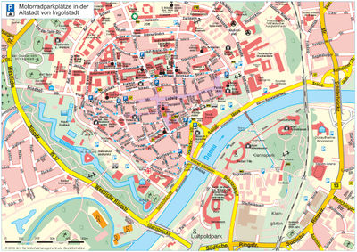 Die Stadt Ingolstadt hat auch an die motorisierten Zweiradfahrer gedacht und für diese im Altstadtbereich Motorradparkplätze ausgewiesen.