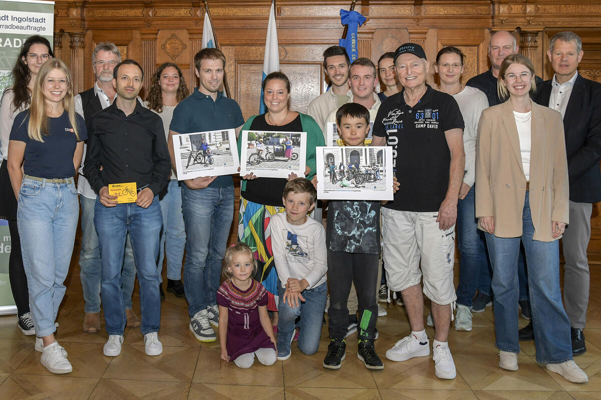 Ein Fotowettbewerb sowie Verlosungsaktionen haben die STADTRADELN-Kampagne 2024 begleitet. Nun stehen die Gewinnerinnen und Gewinner fest. Diese waren am Donnerstagabend zu Gast im Historischen Sitzungssaal im Alten Rathaus, wo ihnen Baureferent Gero Hoffmann die Preise übergab.