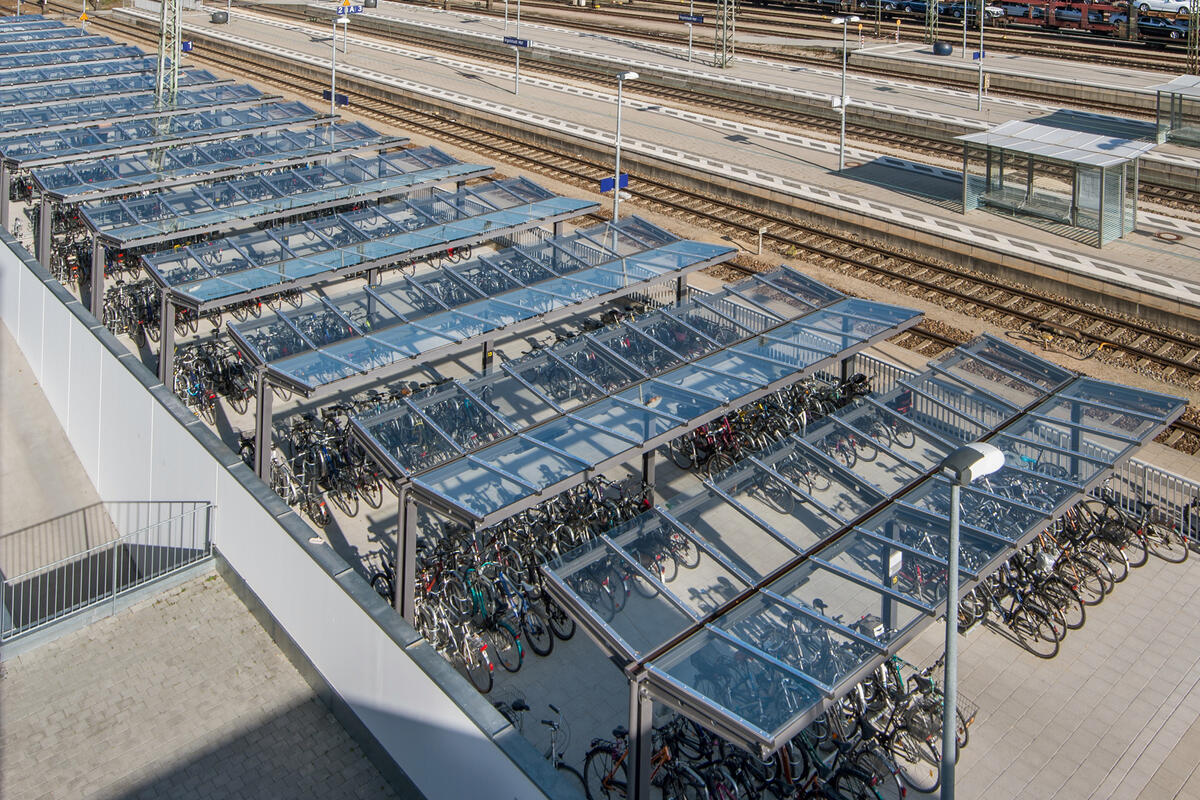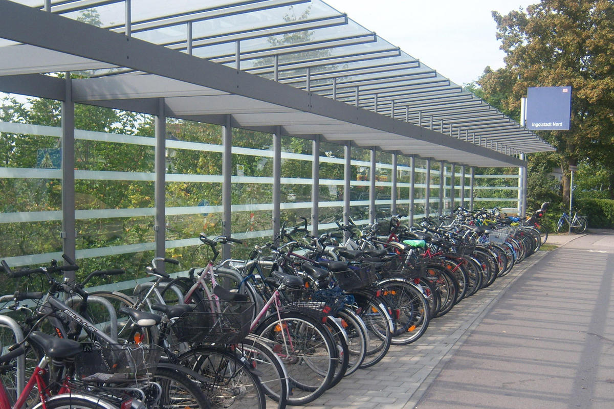 Auf der Nordseite des Hauptbahnhofs in der Bahnhofstraße stellt die IFG Ingolstadt 240 überdachte Einstellmöglichkeiten für Zweiräder bereit.