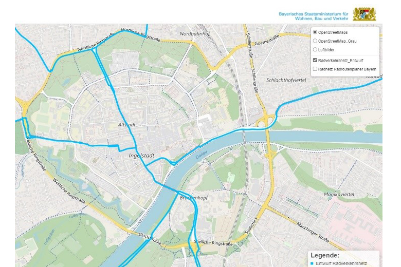 Ingolstadt unterstützt das Bayerische Staatsministerium für Wohnen, Bau und Verkehr bei der Umsetzung eines alltagstauglichen Radwegenetzes in Bayern.