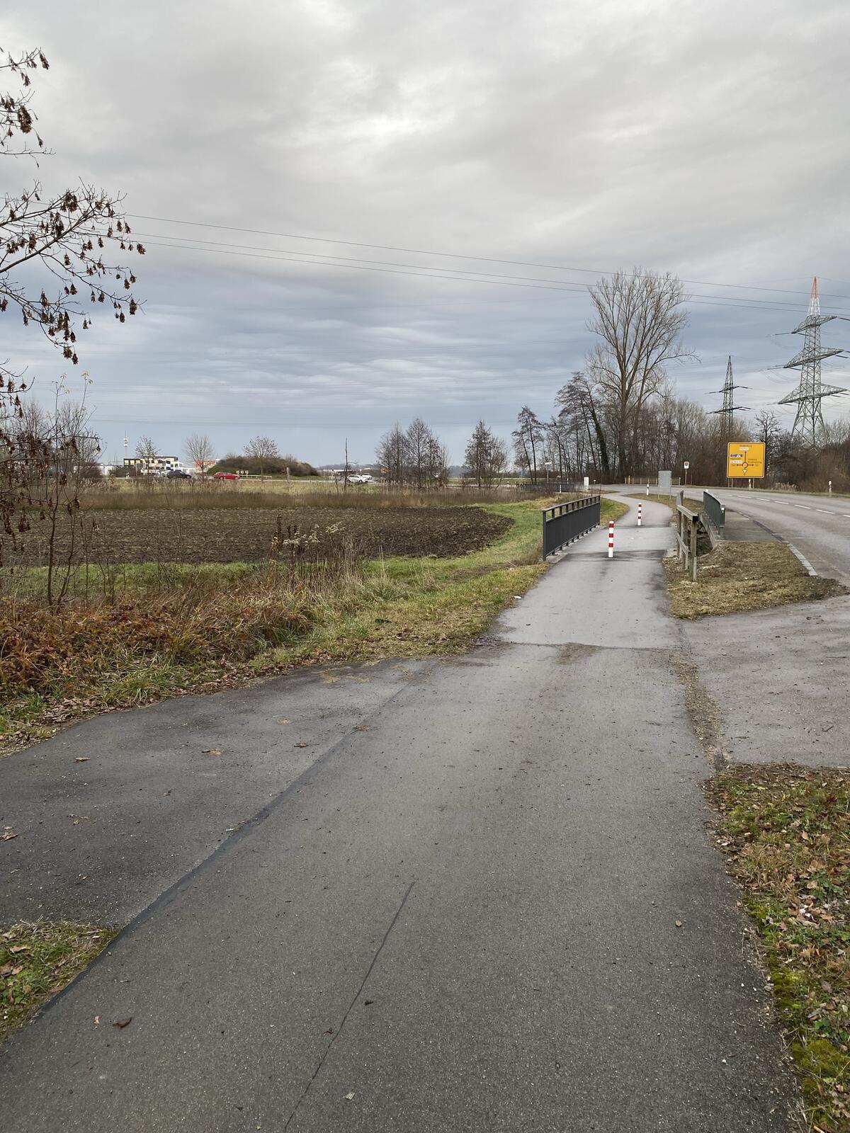 An der Einmündung zur Straße Auf der Schanz wird im Bereich des Wasserwirtschaftsamtes auf eine Länge von ca. 15 Meter der vorhandene Radweg von ca. 2,50 auf 3,00 Meter verbreitert, damit ein optimierter bzw. sicherer Begegnungsverkehr zwischen den Radfahrern stattfinden kann. Diese Maßnahme wird im Zuge der Verlegung der Bushaltestelle an dem neuen BOS/FOS-Gebäude erfolgen.