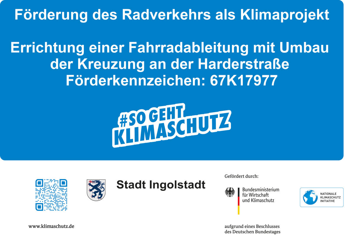 Die Errichtung der Fahrradableitung mit Kreuzungsumbau an der Harderstraße wird finanziell vom Bundesministerium für Wirtschaft und Klimaschutz aufgrund eines Beschlusses des Deutschen Bundestages finanziell gefördert. Die bewilligte Zuwendung (Förderkennzeichen: 67K17977) beträgt ca.16.000 Euro.